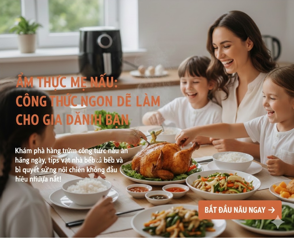 Bí Quyết Hiện Đại: Đặc biệt tập trung vào các công thức sử dụng Nồi Chiên Không Dầu, giúp bạn chế biến các món chiên nướng lành mạnh, nhanh chóng và tiết kiệm thời gian.